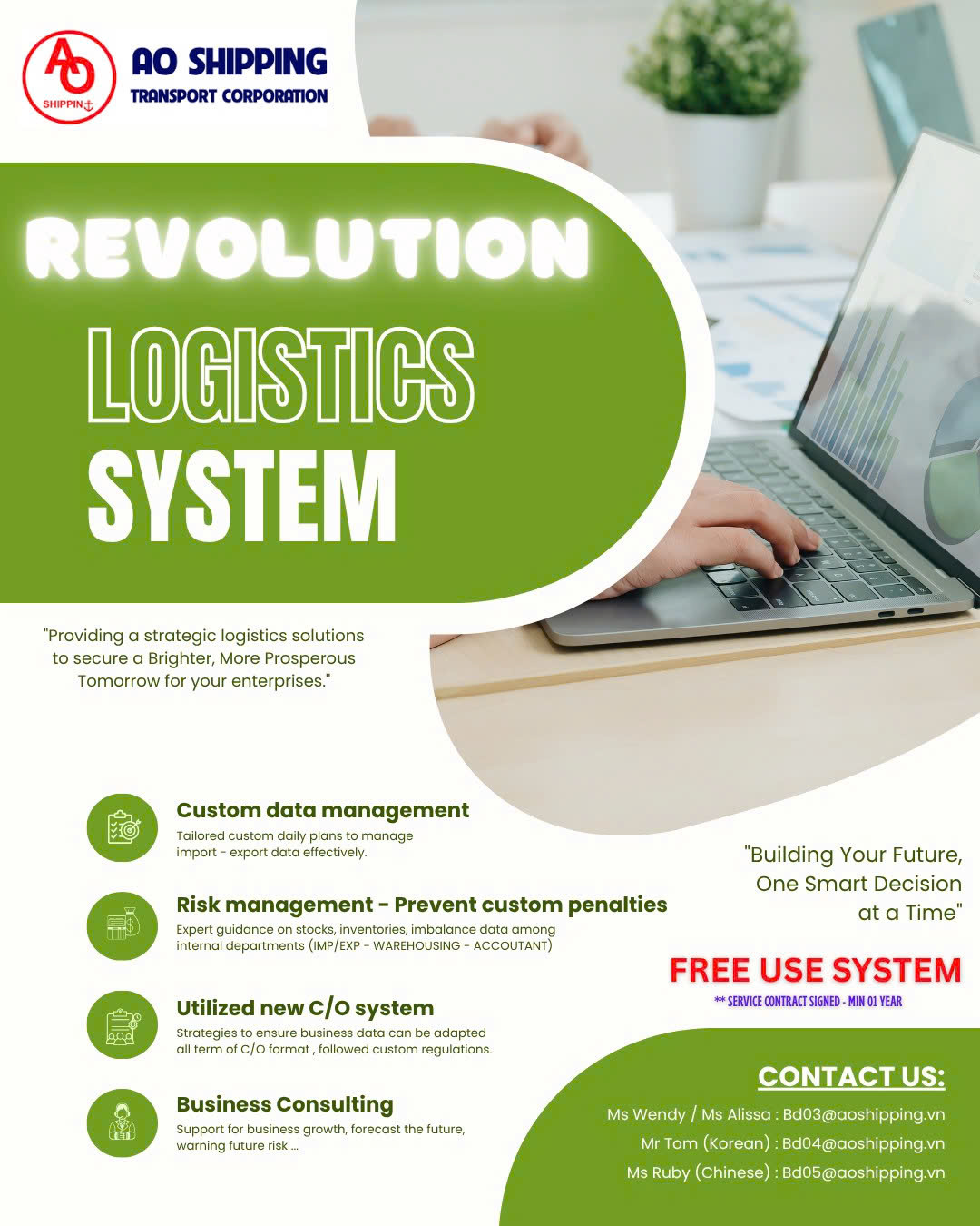 AO Shipping proudly introduces Shipping & Tech Solutions an integrated service package that helps businesses streamline global trade, reduce logistics costs, ensure customs compliance, and manage supply chain data with accuracy and transparency.